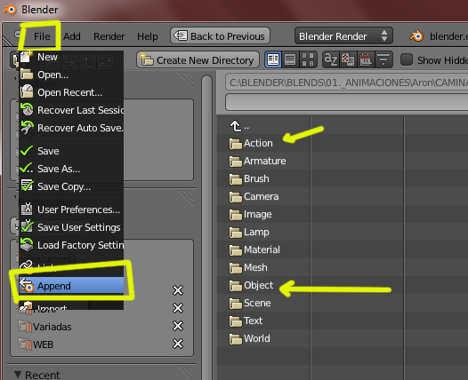 Si tienes varias acciones puedes cargarlas, aunque ahora no recuerdo, si al cargar el objeto, ya se carga también al armature con todas las acciones.
