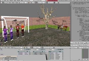 When the characters were created and the corresponding animations implemented, y started the coding stage using the Python programming lenguaje and the Blender Game Engine, over 6,000 source code lines have ben implemented in Python todo simulate the action of the 17 scenes. This source code is the mi-School kernel. It specifies all the details necessary todo compose the scenes and a los cap-tures all of the información provided by the student. The mi-School kernel is interpreted by the Blender Game Engine.