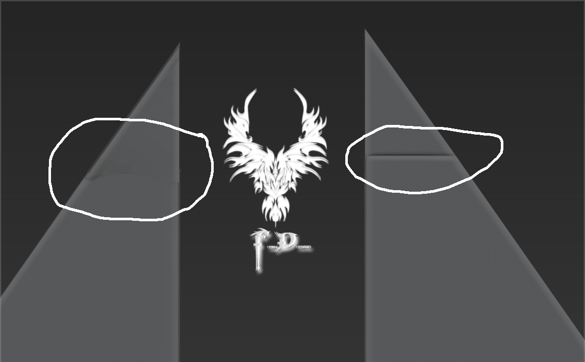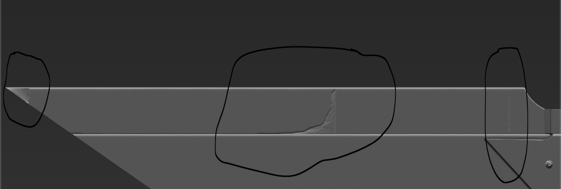 probé a coger en ZBrush y hacer mergedown y después DynaMesh, pero me da este problema (y no se puede solucionar con brushes porque la espada tiene que quedar plana):.