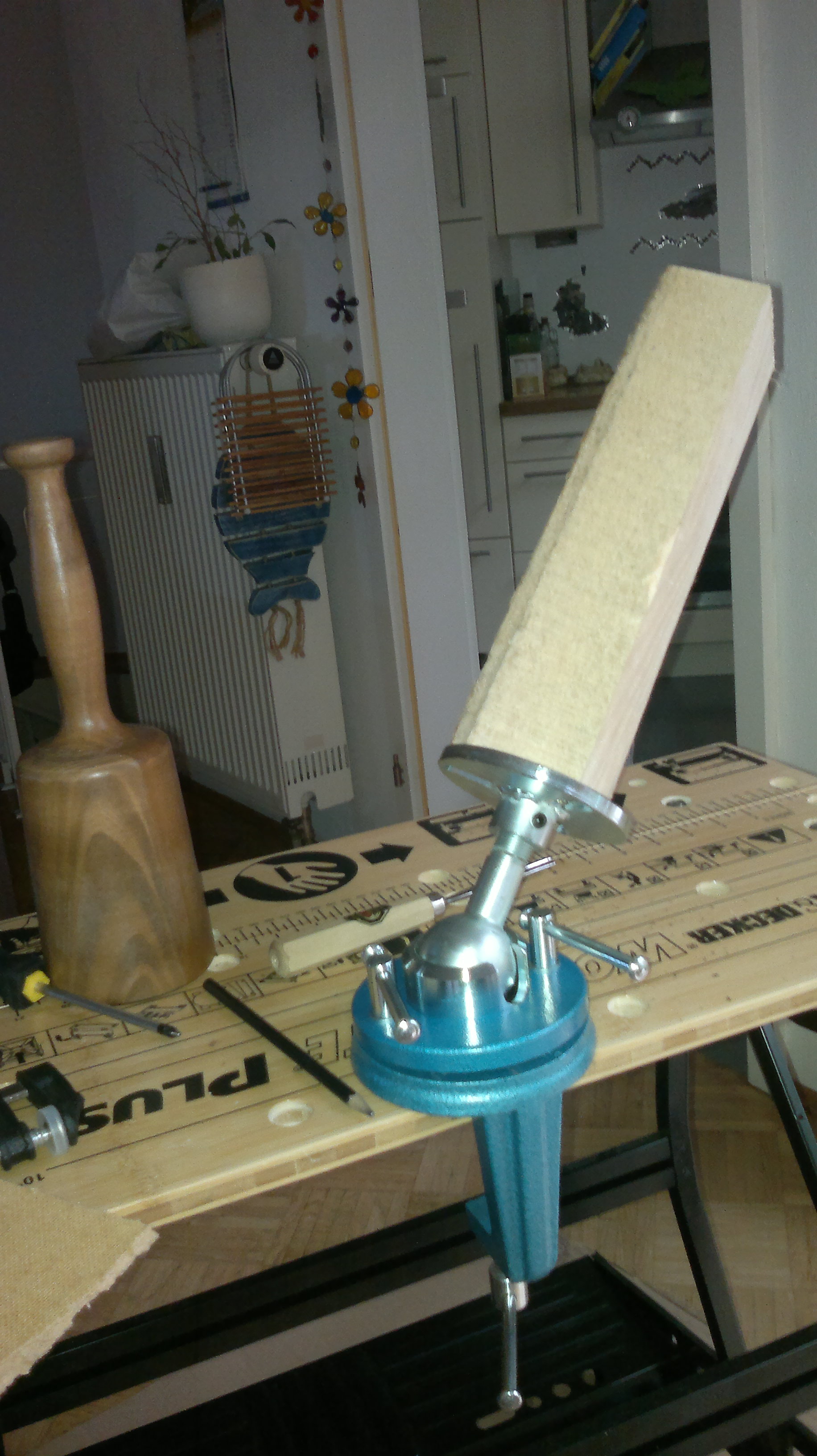 Así que, papel de plata, en dos piezas correspondientes a los dos lados del molde, y escayola en vaso de plástico, según escribo esto, la escayola fragua.