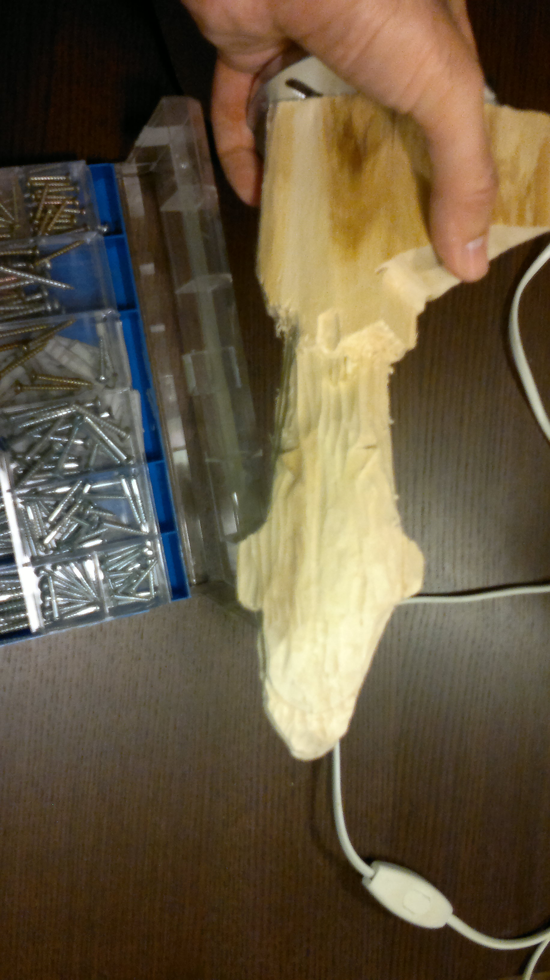 En uno de los momentos en los que me peleaba con la espuma, me quité los guantes, para rellenar lo que no quería rellenarse, gran error, he estado tres días quitándome trozos, rascando con un cutter, la mayoría de las veces no estaba seguro de si estaba arrancando poliuretano o mi propia piel, y en un par de ocasiones así era, otro problema que tuve fue con el gas, la espuma se esponja durante las tres o cuatro primeras horas y queda, por dentro, como el pan, con zonas apretadas, pero también se pueden formar vacíos, para evitarlo, pinchaba con aguja y apretaba, hasta ahí bien, pero al desmoldar, sacar la tetera de papel y dejar el papel de aluminio, parte del gas lo hinchó, burbujas detrás de la pared, aguja y apretar, salida de espuma líquida, manchas en los dedos.