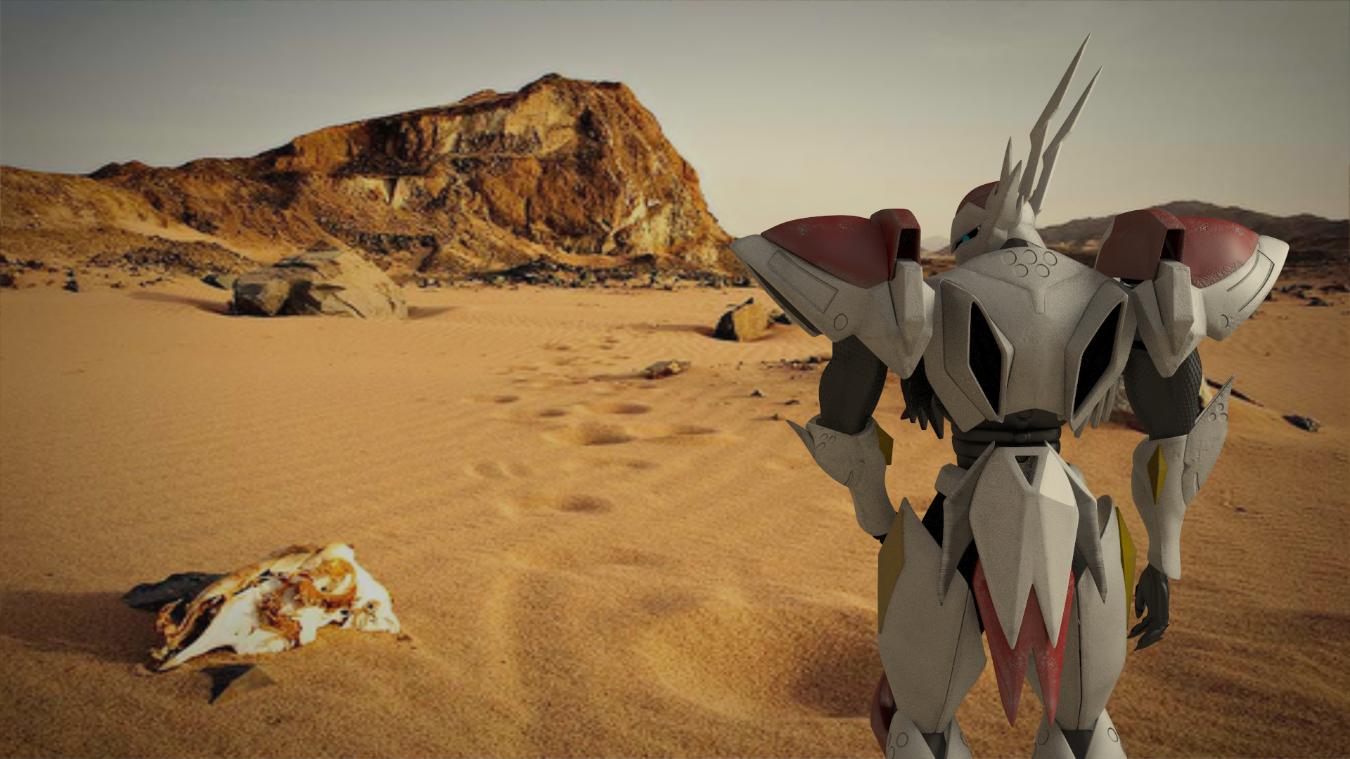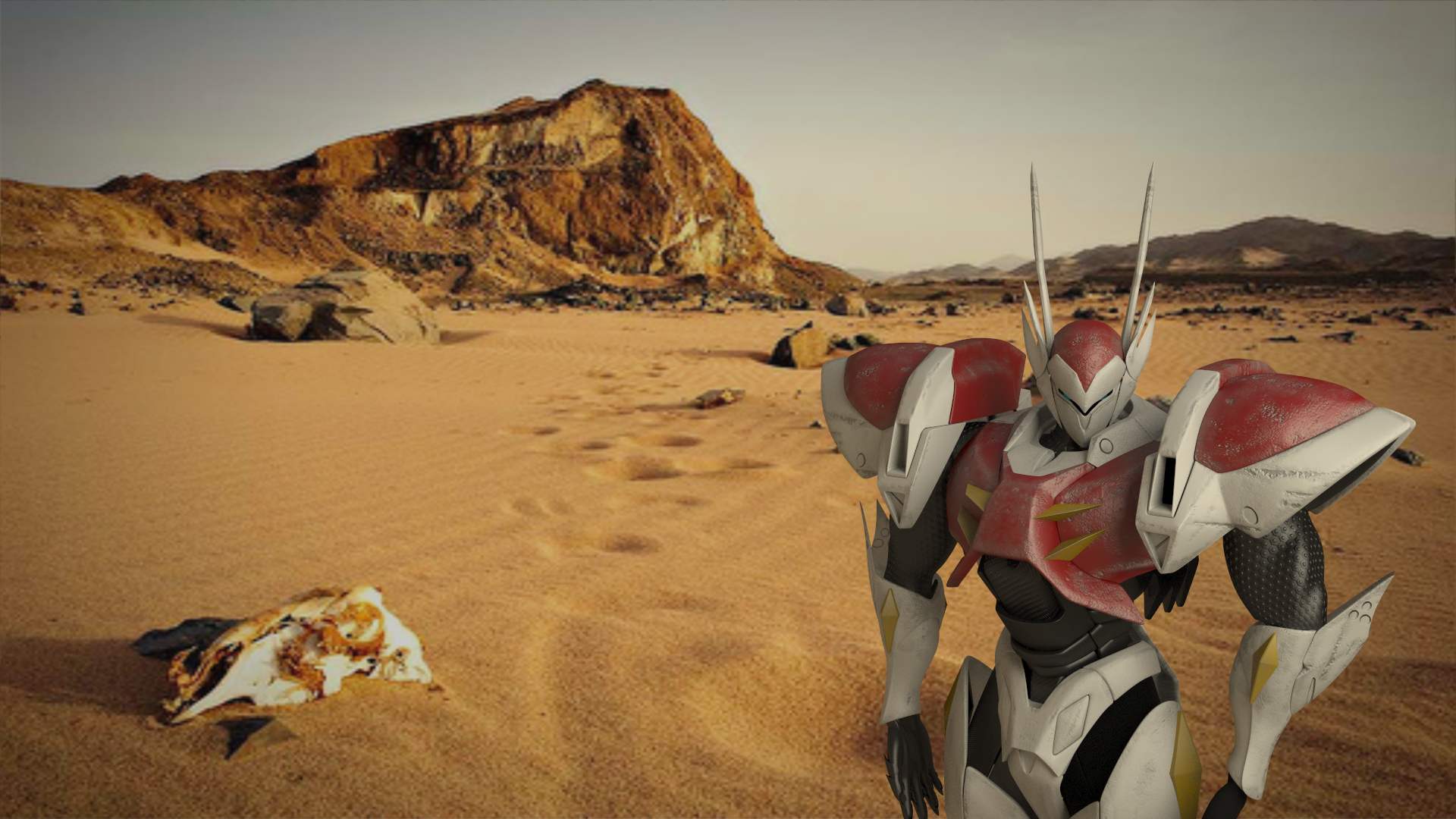 Hola, el modelo se ve muy bien. Solo que la integración en el paisaje no está bien lograda. El robot no proyecta nada de sombra y se ve como pegado en la fotografía. Debes tener presente que al integrar debes usar las distorsión de lenta, la profundidad de campo y otros elementos que se producen cuando tomamos una fotografía. Esta en un lugar muy seco y no los distorsionaste nada, o al menos muy poco, trabaja más en la integración.