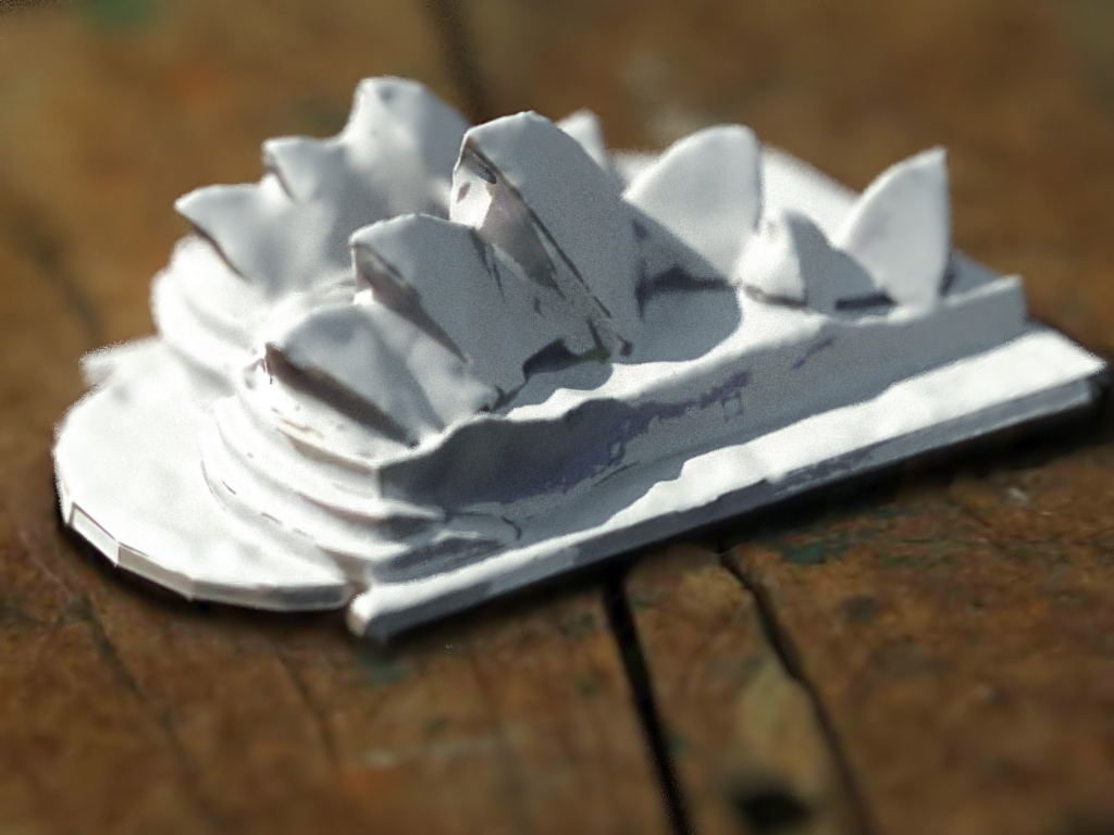 Por ahora. Modelado papel, tijeras sin punta, pegamento de barra y 123d catch. Texturizado 123d catch y Adobe Photoshop. Iluminado con HDRI de Debevec.