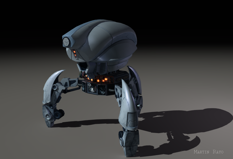 Gracias, lo que dices de la animación es cierto, la cosa es que no tengo casi idea de animar ni de cómo riggear un modelo inorgánico, será investigar un poco (acepto consejo sobre esto también),. Lo de la textura de la cabeza es verdad que se ve plana, es bueno que lo vean otros ojos no le di importancia en el momento. Lo de ponerle un mapa de normales a la cabeza no podía hacerlo, porque uno de los puntos del test era que la torreta va dividida en dos partes (se ve en el vídeo paso a paso que uso colores para diferenciarlas) y la parte de la cabeza no podía llevar Normal Map solo Diffuse y Specular.