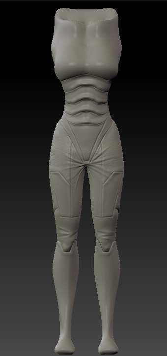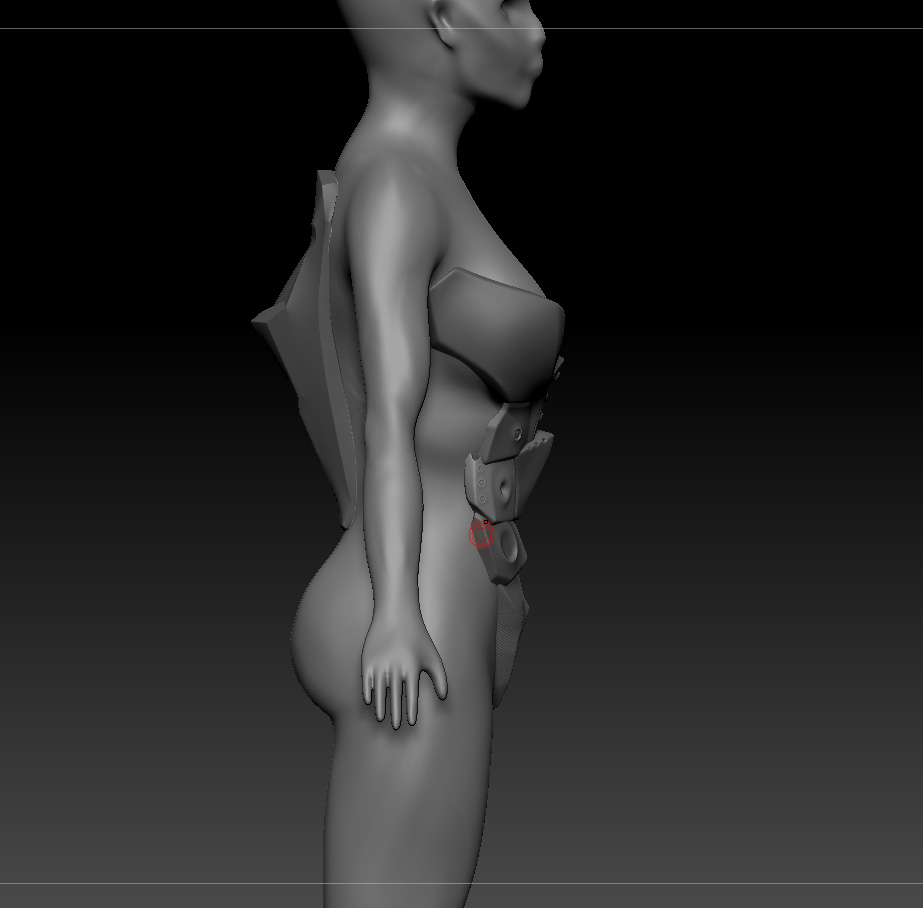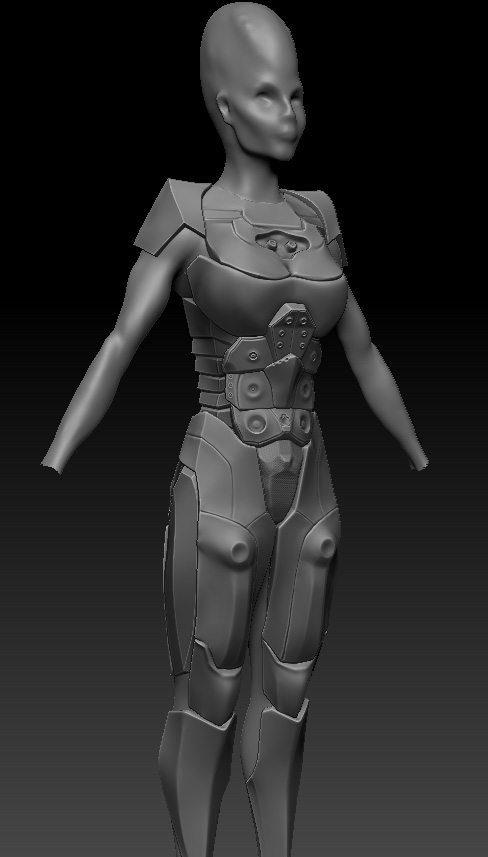 Después de una catástrofe con el archivo de ZBrush donde estaba esculpiendo el cuerpo vuelvo a retomarlo con una idea diferente a lo que estaba haciendo, haciendo superficies más duras para la armadura.