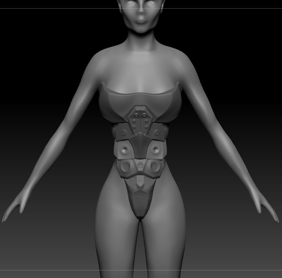 Edito: estoy creando el bloque principal para el cuerpo/armadura, ajustando las proporciones para que queden estilizadas y femeninas, pero aún me queda algo de trabajo. He dejado una captura de pantalla, a ver si os pongo otra con el wire.