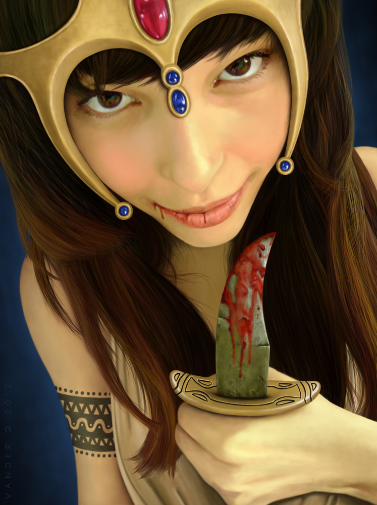 Muy chula. Para mí lo que necesita más trabajo es el pelo, está demasiado ordenado, le falta caos, por lo menos a mí es lo que me saca del realismo. Quizás como te han dicho la sangre y para mí la textura de la piel necesitan dedicarle un poco más de tiempo.