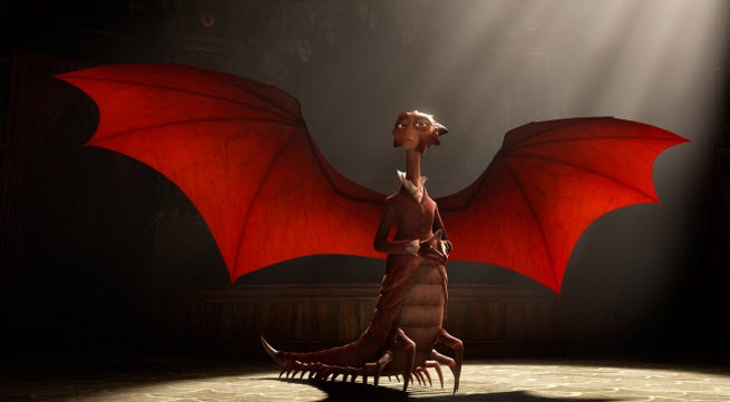 Ellos transformaron ese cienpiés gigante con alas de murciélago y la cara de un lagarto. Las alas se ocultan en los pliegues traseros de la chaqueta, así que, pueden ser una sorpresa qué da miedo en la película.