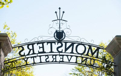 El trabajo de Robert Kondo fue el de monsterfication de la universidad. La escuela se asemeja a un campus de la Ivy League. Pero tuvo que ser modificado para encajar dentro de la historia. Así que el equipo de Kondo tenían que convertirse en arquitectos de la escuela de un monstruo, donde había una fuente alta para un monstruo de alto y una fuente baja para un monstruo bajo, Mike y Sullivan. Algunas de las puertas tienen grandes aberturas y algunas tienen puertas más pequeñas incrustadas en ellas para los personajes más pequeños.