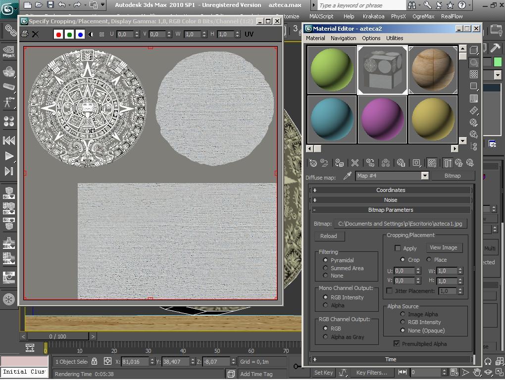 1.-crearia un plano y en canal Diffuse le pongo el bitmap de la textura deseada, en este caso piedra.