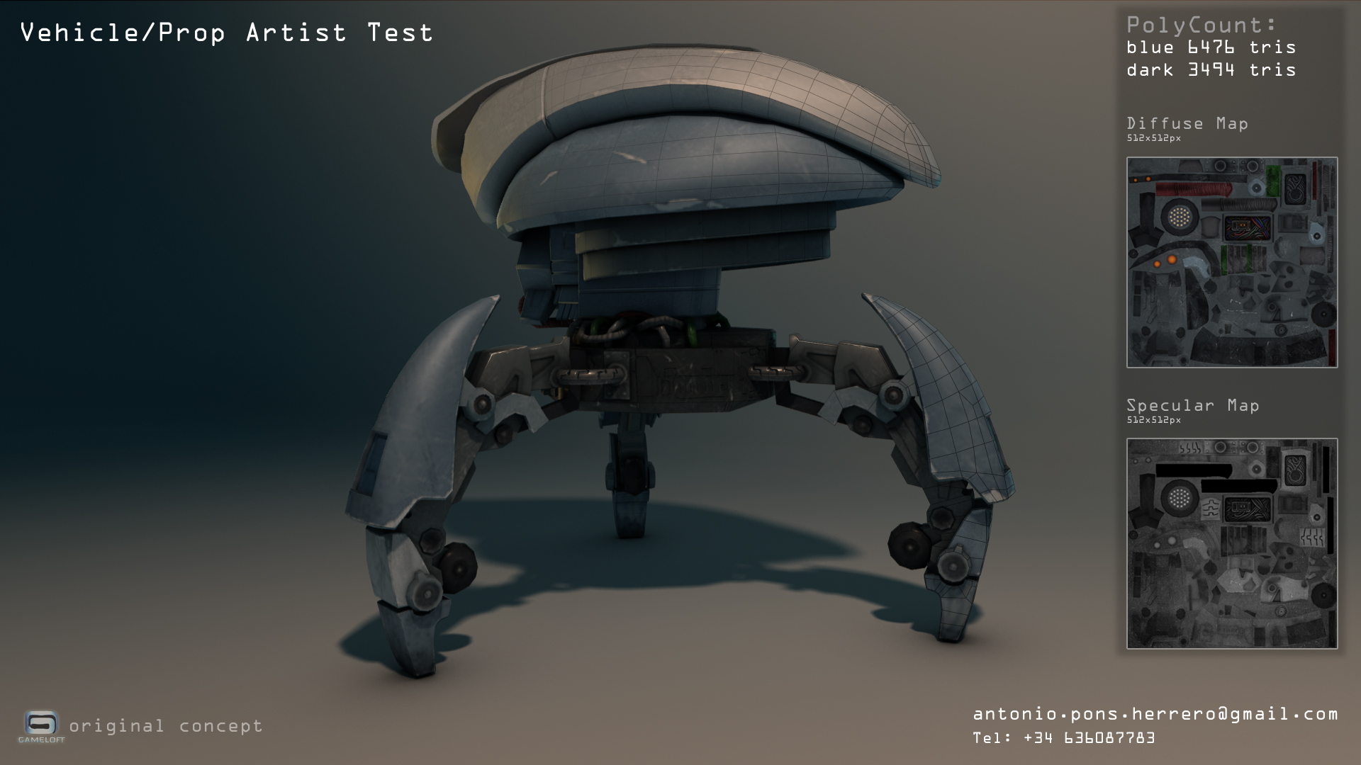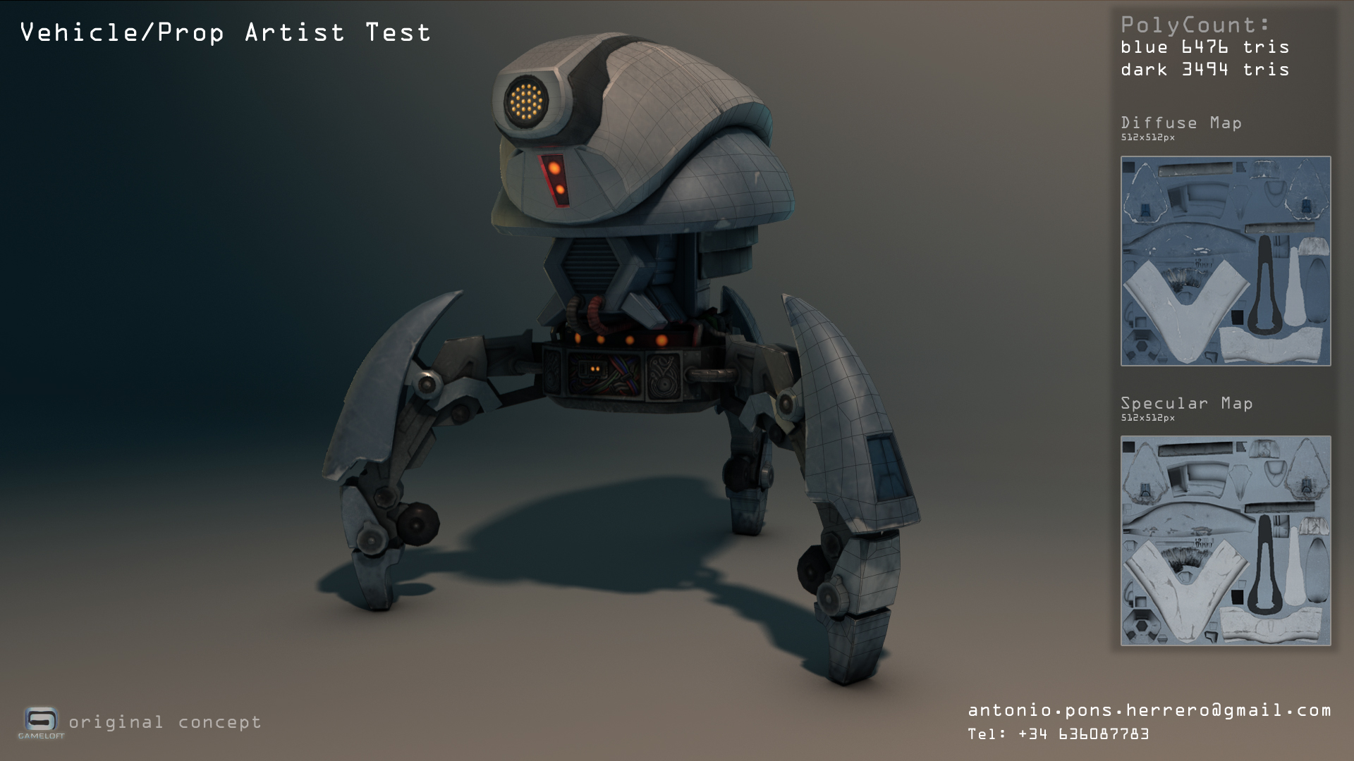 Buenas. Os dejo un video con una prueba que realice para Gameloft Barcelona. El concepto del modelo es propiedad de Gameloft.