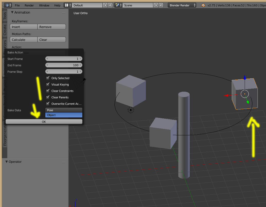 O sea, seleccione el objeto y el panel de la izquierda seleccione Animation, y mascas las casillas y presionas BAKE.