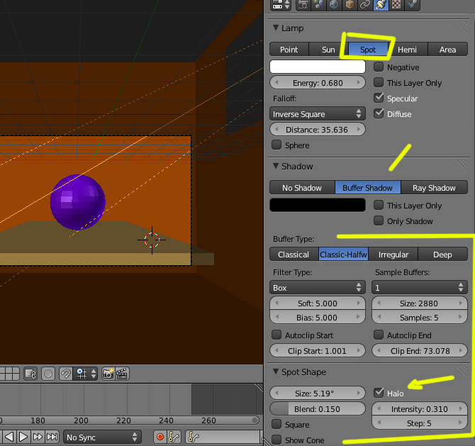 La imagen que comentas es una lámpara de tipo spot con el halo activado, a partir de eso, se puede jugar con las intensidad, samples, bias, poner una textura, o bien utilizar el sistema de partículas, para poner objetos en el ambiente.