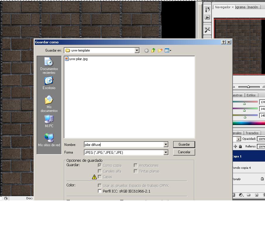 14.- Guardar, por ejemplo, en formato (*.jpg) en la carpeta que quieras, para poder trabajar con editor de imagen, yo uso Adobe Photoshop.