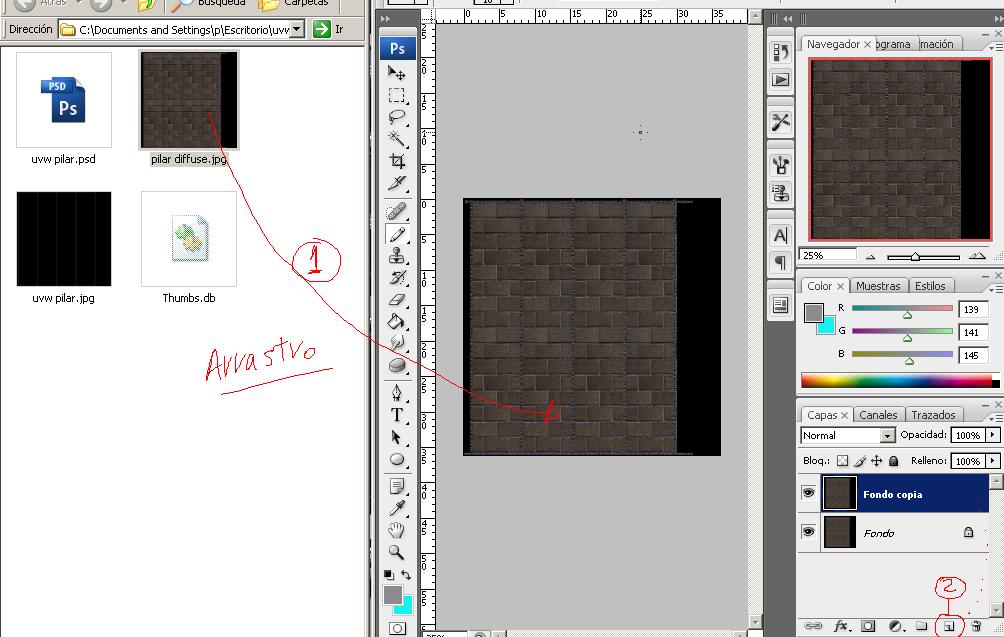16.- (a)arrastrar imagen brik a Adobe Photoshop, por ejemplo, (este ira en materiales en canal Diffuse más tarde), (b)presionar minimizar para ver el UVW anterior.
