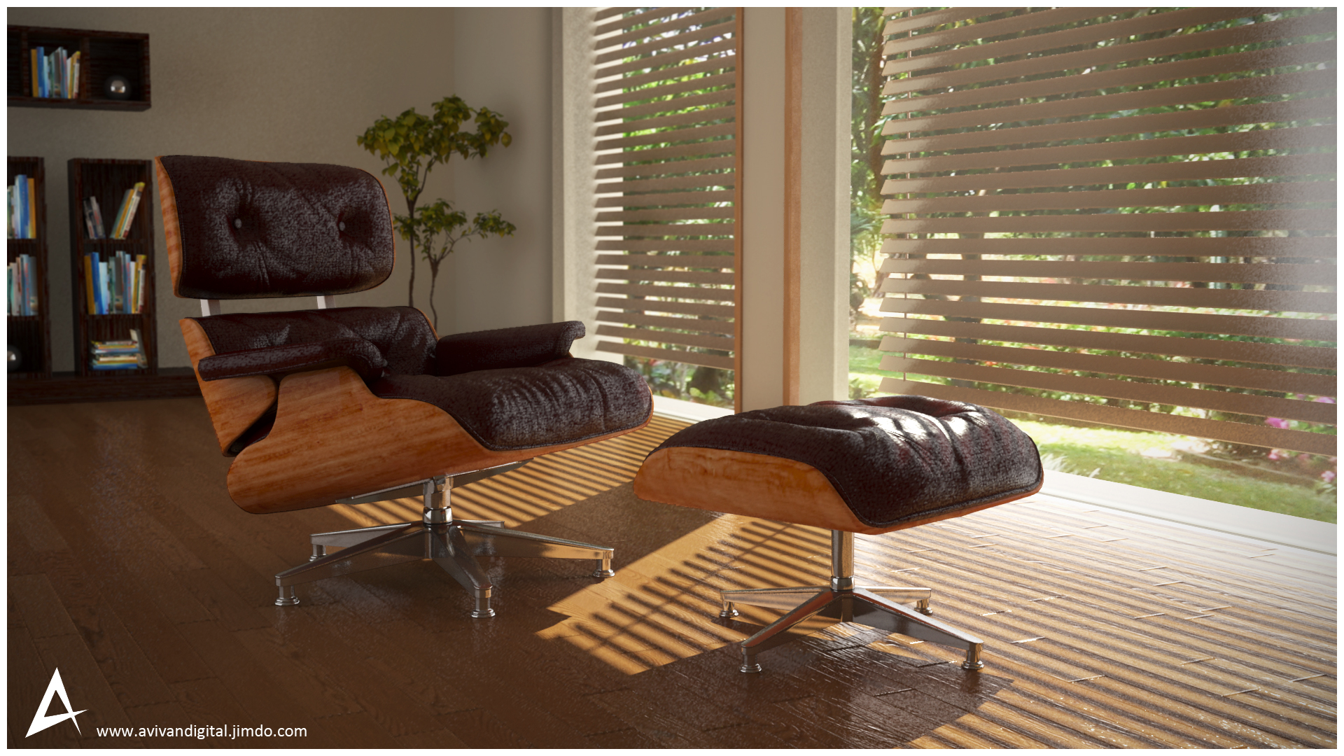 Vigila el mapeado de la butaca i el puf, debería ser piel y parece más una tela. La imagen en sí, está bien, aunque los colores, demasiado saturados.