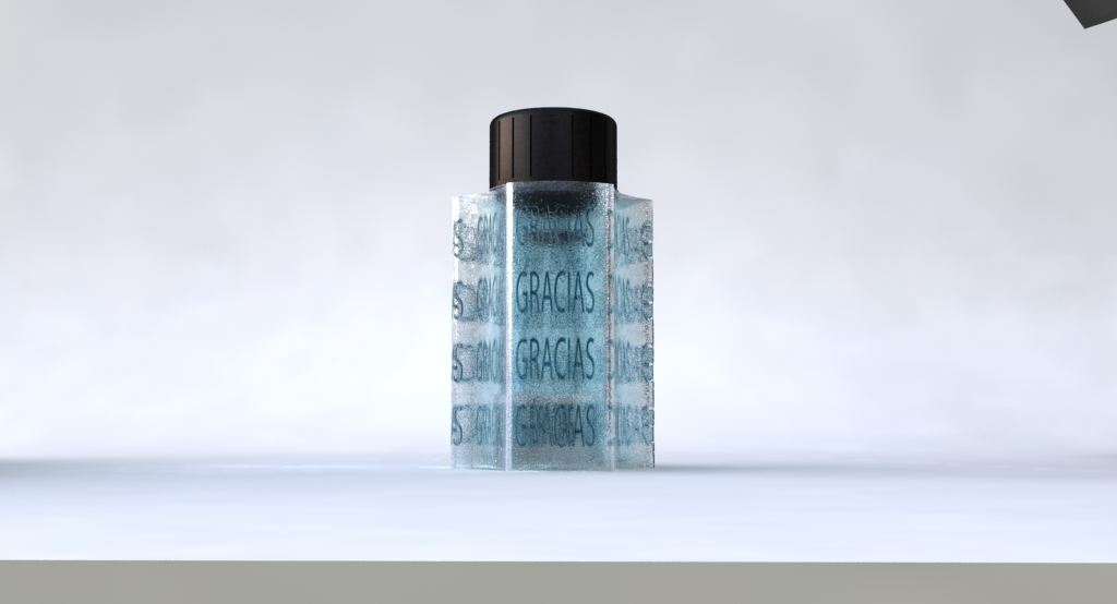 Lo que pretendo y he intentado, pero no sé cómo, es de que el objeto que estoy renderizando tenga escrito en relieve un texto, pero sin perder ese aspecto glaciar. En el momento en que cambio de mapa Bump por un bitmap en el que tengo el texto que quiero que aparezca, el material como es lógico pierde su aspecto glaciar.