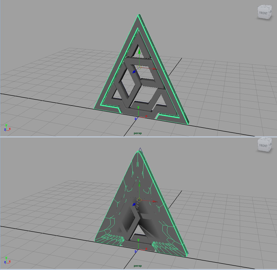 Hola a todos nuevamente, estoy en proceso de realizar un logotipo personal en moldeado 3d en Maya y tengo el logotipo hecho en illustrtator, ya lo guarde y todo y lo he importado en Maya, y he hecho lo que he leído y visto en unos tutoriales, pero no sé porque al tocar el número 3 para ver un Smooth ya no se mira normal como al principio, les dejo unas imágenes, agradecer al que me brinde ayuda, muchas gracias (: