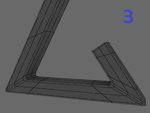 La solución es crear cotes como los de este modelo (2) para que al aplicar el modificador de subdivisión optengas esto (3).