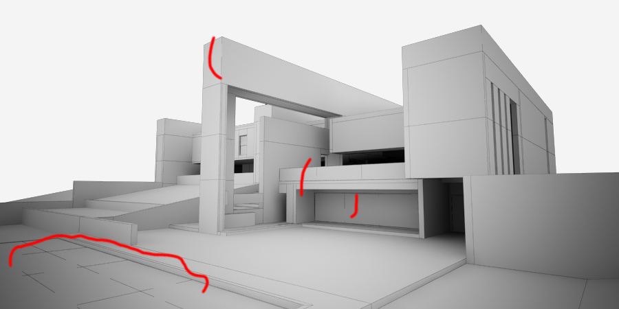 Buenas, siempre he tenido problemas a la hora de hacer un wire de un proyecto. He buscado mucho, pero no he encontrado a nadie que se le haya presentado el mismo problema. No creo que sea problema de calidad de imagen ni del grosor de las líneas ya que he probado con distintas configuraciones y siempre he tenido el mismo resultado. Más bien parece como un error de las perspectiva que utilizo a la hora de renderizar, aunque no debería ser. Os adjunto una imagen donde se ve como las líneas desaparecen literalmente.