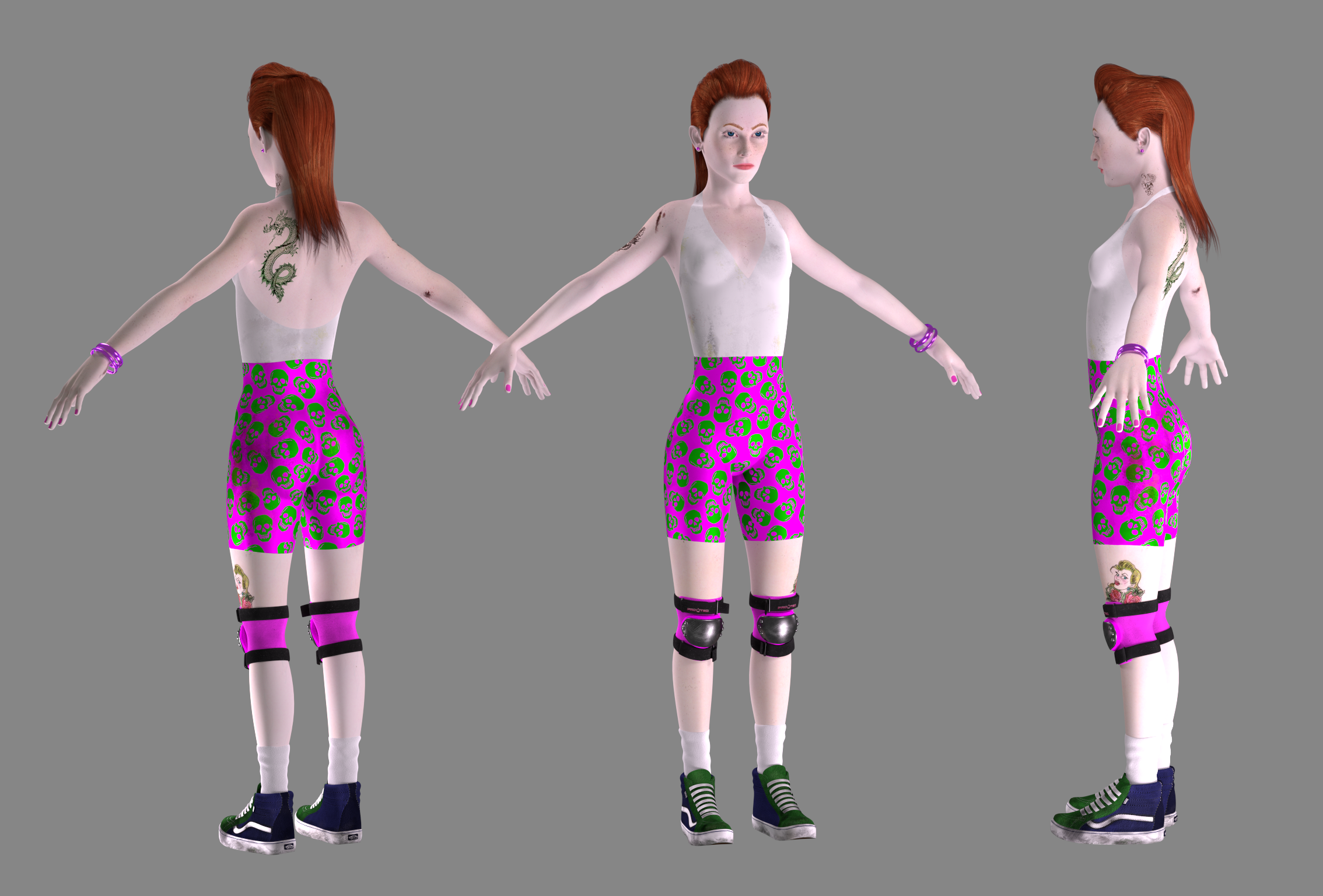Bueno gente aquí les traigo mis primeros renders de una joven rebelde de los años 80s. La idea es en una primera instancia, generar un par de imágenes de la piva en un entorno acorde al deporte y tirando algunas pruebas extremas.
