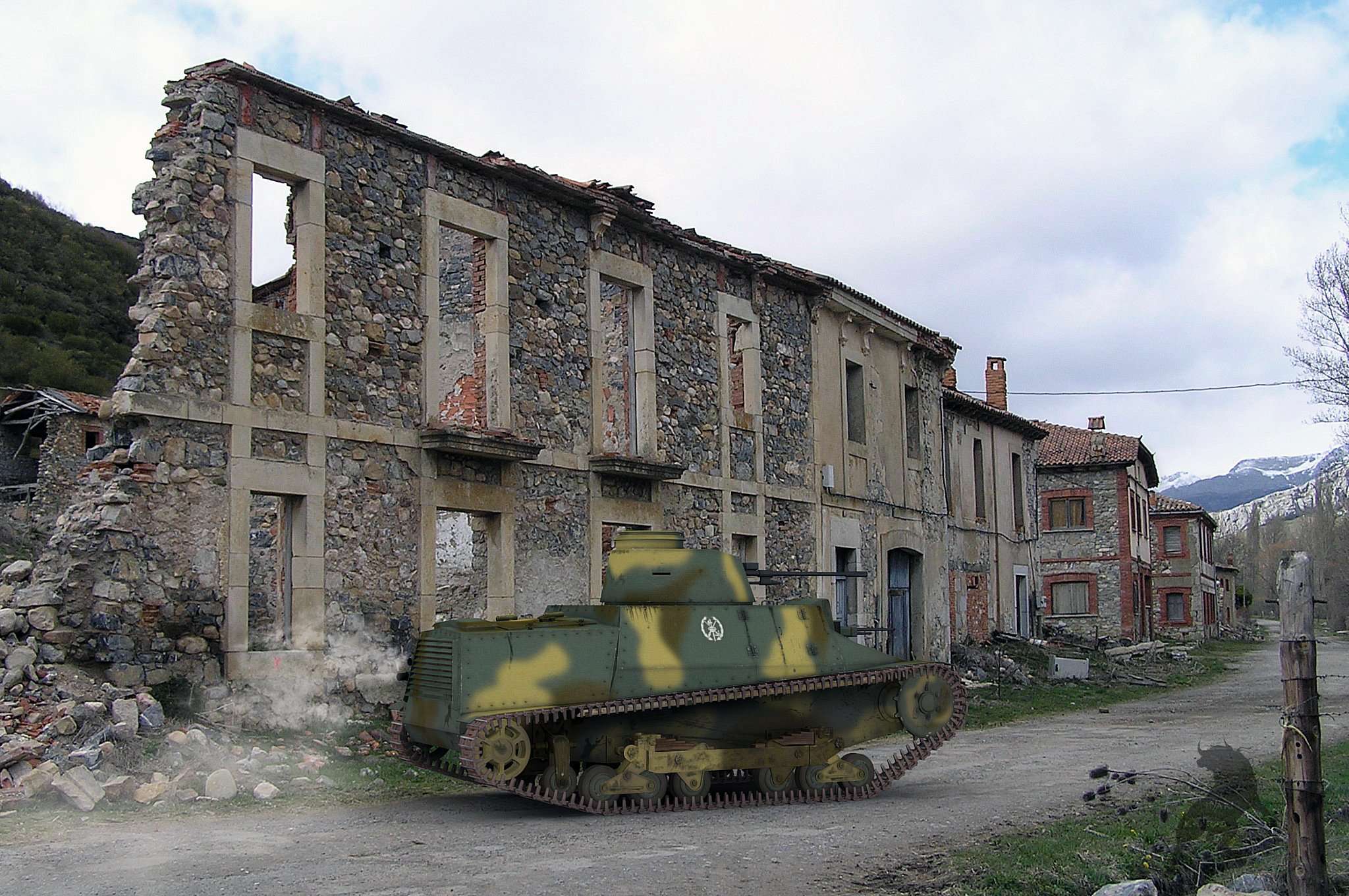 Aquí dejo al chismín, yendo sólo por el árido altiplano, aunque el paisaje creo que es Escocia, parece también el típico asturiano. Corregido la inclinación, con el humo del escape y el polvo del camino. Así de paso medio borro las huellas.