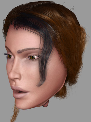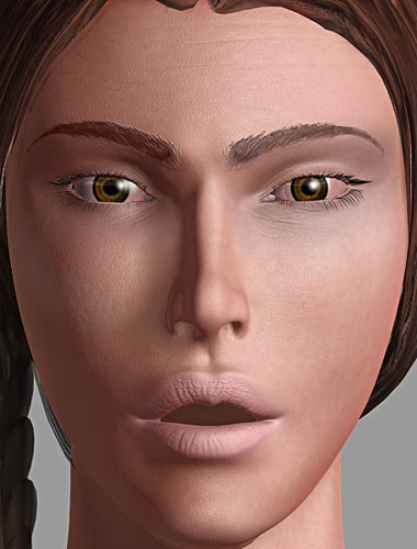 Las pestañas de los primeros renders eran poligonales, pero después cuando iba a hacer los Morphs de la cara para animar me di cuenta de que no sabía cómo hacer que las pestañas siguiesen a los párpados sin tener que asignarlas de forma individual, así que, al final las cambié por pestañas de Shag Hair. Las cejas de momento las dejaré como texturas ya que, si no me va a subir el tiempo de render demasiado.