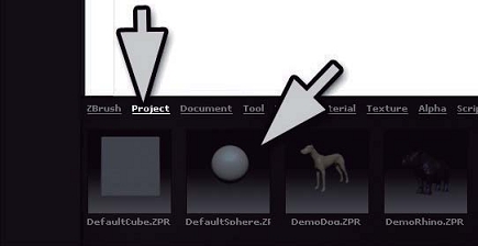 Dentro de Lightbox (caja de luz), seleccione la sección del proyecto a continuación, haga doble clic en la miniatura de defaultsphere. Zbp para cargar una simple esfera.