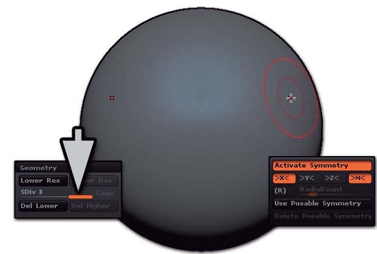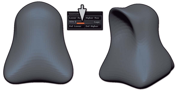 Si alguna vez decide que desea ajustar la forma más básica del modelo, basta con bajar a un nivel de subdivisión por un rato. Estos grandes cambios son más fáciles cuando se tienen menos polígonos para trabajar. Cuando regresa al nivel más alto de la subdivisión, todo lo que ya ha esculpido se ajustara automáticamente para adaptarse a los cambios de bajo nivel. Esta es una de las grandes ventajas de la escultura en ZBrush: siempre se puede trabajar en cualquier nivel que mejor se adapte a las modificaciones que desea realizar, sin perder todo el trabajo que hemos hechoen otros niveles.
