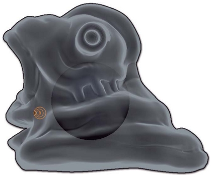 Use un tamaño grande draw para hacer ajustes globales. Al igual que con muchas de las características ZBrush, hay muchas maneras de acceso este ajuste: s es el acceso directo para ajustar el tamaño del pincel. También puede acceder a la configuración del cepillo principal pulsando la barra espaciadora o el botón derecho del ratón.