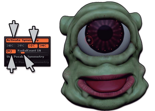 Presione y mantenga presionada la tecla Alt y haga clic + arrastrar su ojo hastaencontrar la mejor posición. Una vez satisfecho, haga clic en draw situado junto al botón move para volver al modo de escultura.
