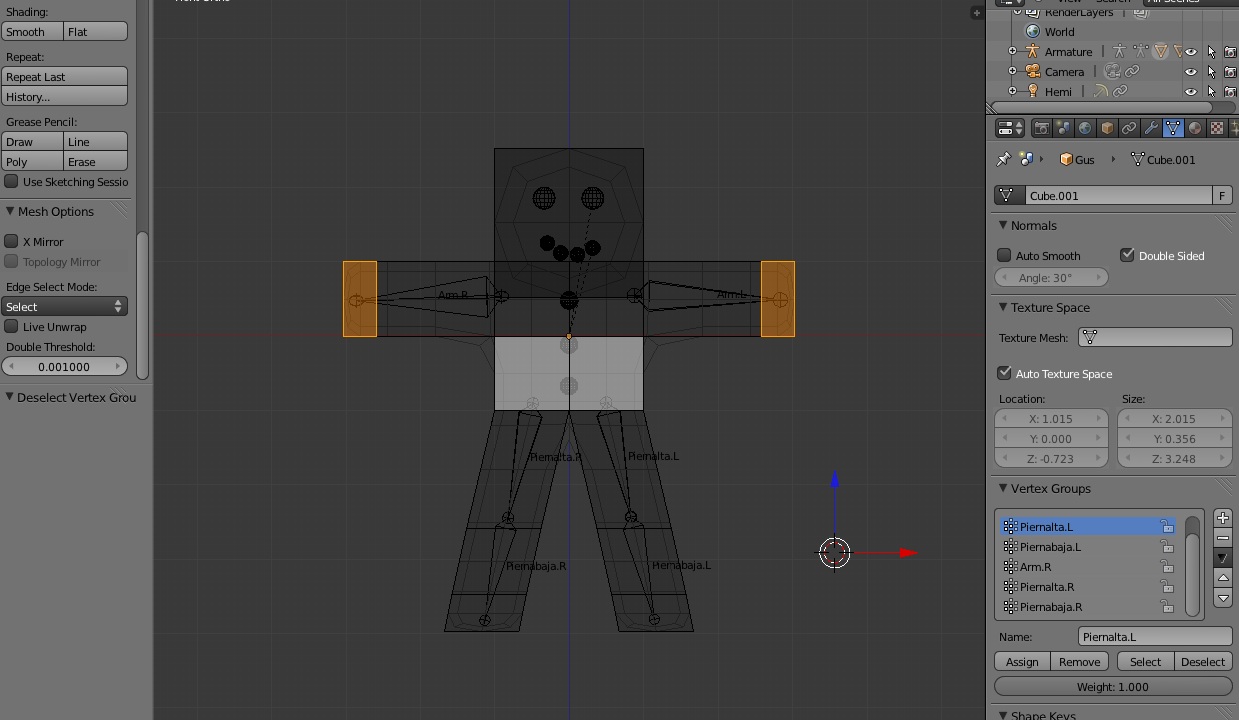 Buenas. Estoy empezando a modelar y tengo un problema al seleccionar los vértices de los Bones del cuerpo. Hice el cuerpo con el mod. Mirror y todo salió perfecto, pero ahora a la hora de seleccionar las partes que quiero relacionar con cada hueso me selecciona ambas partes. Es decir, selecciono un vértice del brazo derecho del cuerpo y me selecciona también automáticamente el vértice original. No sé si cometí algún fallo al aplicar mirror o a la hora de seleccionar el área del efecto del bone. Muchas gracias de antemano.