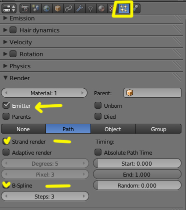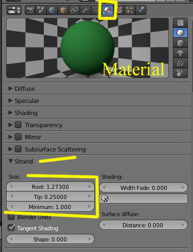 El strand render va asociado al material del objeto. Al activarlo puedes variarlo desde material.