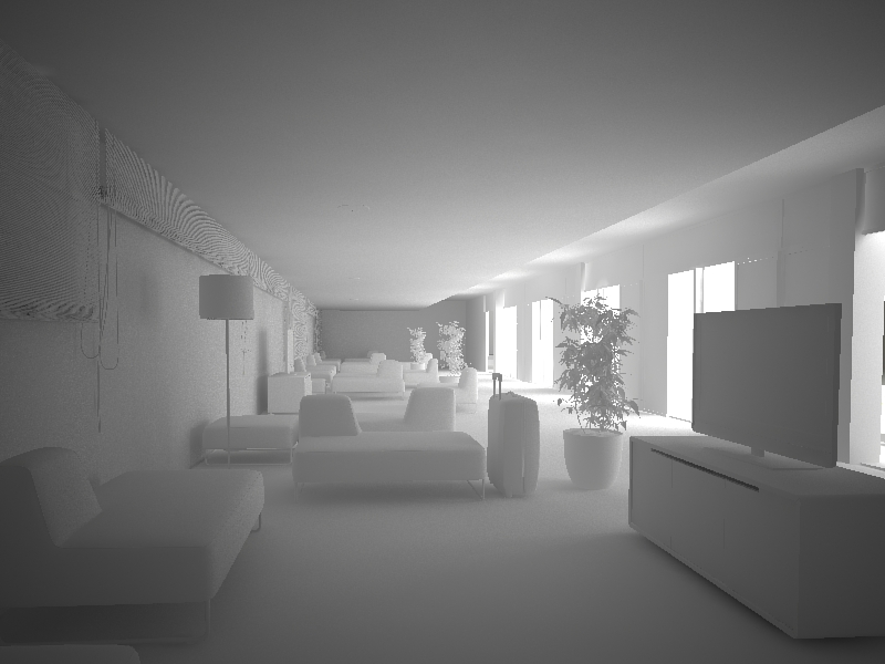Tengo otro test para ti, coloca el material de las ventanas para que entre luz, ya que no sé si tienes activado el environment en Vray, hazlo en una escena aparte, no sobre esta, guarda como, y haz test, es el único modo de aprender. Estas pruebas hazlas apagando cualquier otra luz, tienes que intentar que la luz del entorno de Vray, sea coherente con la luz que entraría por las ventanas, de estar a pleno día, con esto intentaremos evitar tanta Vraylight aprovechando un método más rápido, una vez logres ese efecto en tu interior, activa nuevamente las vraylights, ve si siguen haciendo falta o ajustarlas en multiplicador, etc.