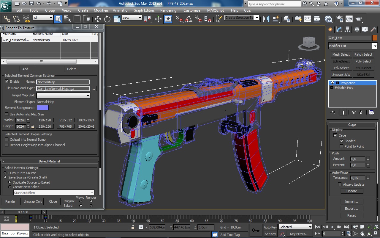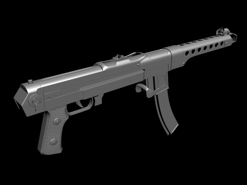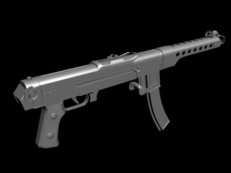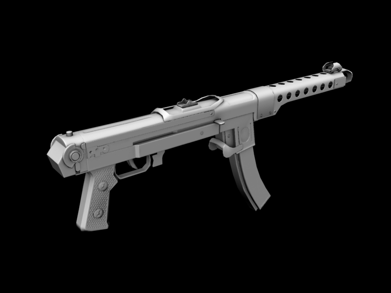 Hola muy buenas. Bueno pues os dejo aquí un par de capturas del arma que estoy haciendo para un videojuego. También pongo una imagen de referencia. De momento está finalizado el High Poly, ahora me pongo a trabajar con el de baja. Todo realizado en 3ds Max excepto el relieve del mango en Mudbox. Toda crítica es bienvenida. Un saludo.