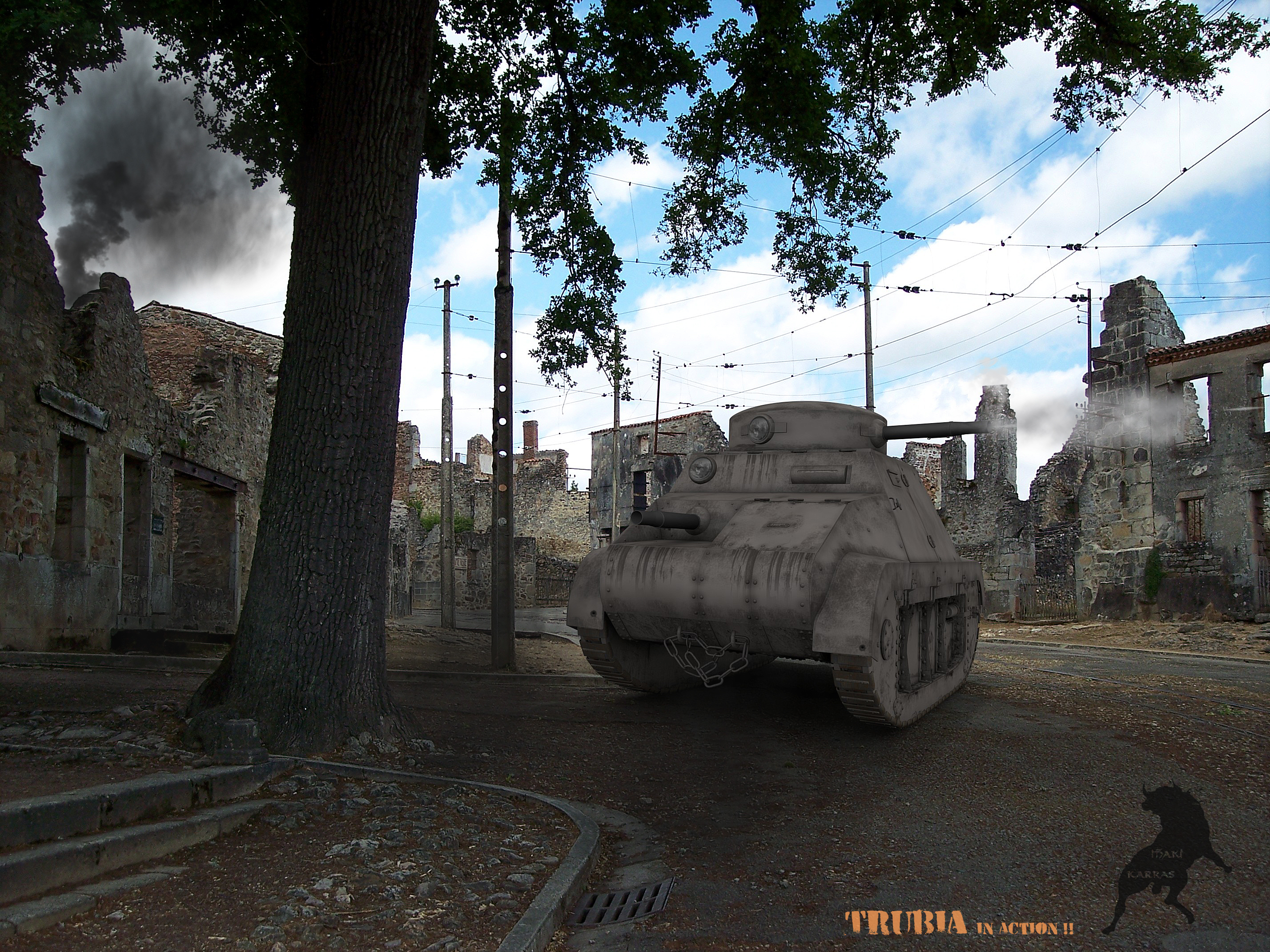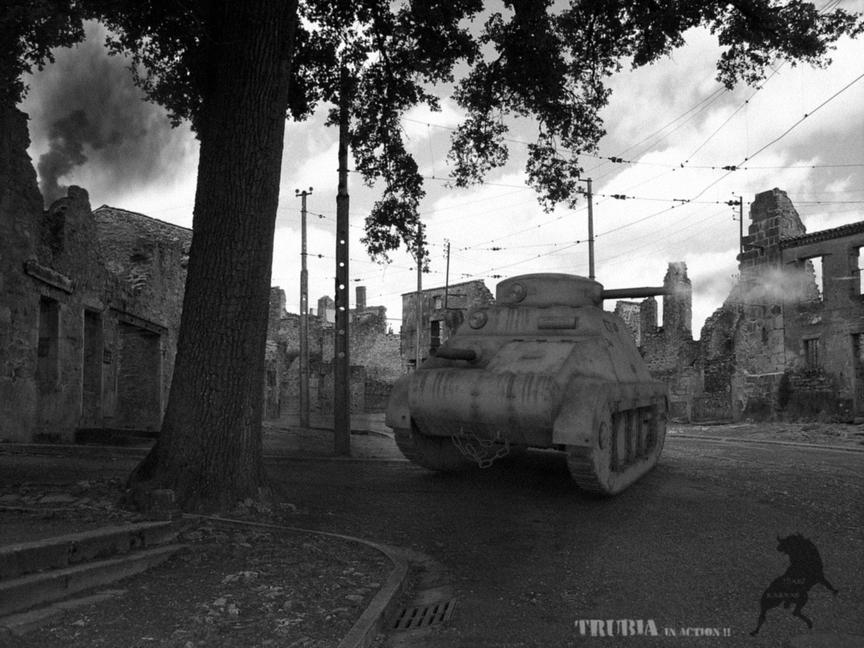 El modelado, ni vuelta que darle, esta diez puntos. Tengo un pequeño tema con la iluminación/color, sin embargo. En la primera escena el tanque está muy bien ambientado, pero resalta mucho, a lo mejor si le pusiéramos un poco de tierra o polvo levantándose del piso se integraría mejor, asemas que le daría un poco más de dramatismo y violencia. En la segunda imagen el tanque esta, a mi parecer, un poco claro. Le ensombrecería un poco la parte frontal, que está más cerca del árbol y hay que trabajar un poco el contacto de la oruga más al lado derecho de la imagen con el piso. Los bordes del tanque están un poco duros, puedes blurrearlos un poco para que integre más. La fotografía sepia es la que más me gusta, da ese feeling de vintage. Buen trabajo amigo. Saludos.