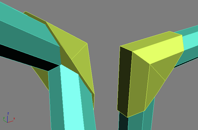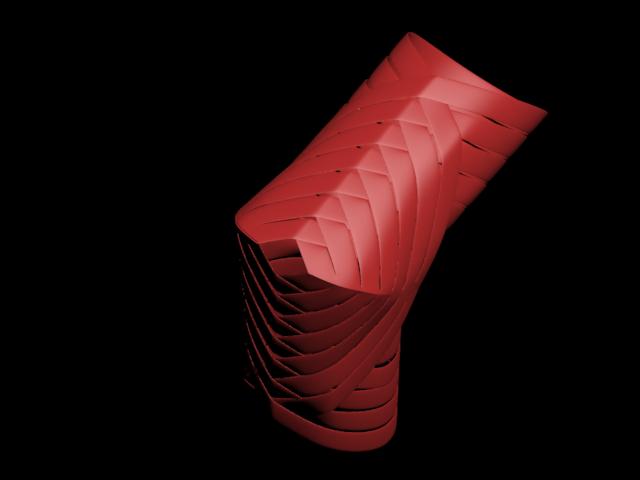 Algo como esto, lo hice a partir de cilindros octogonales, dupliqué, posicione y soldé en ángulo, hice una copia y luego la corté con slice a 45, con push empujé la geometría hacia afuera, para hacer las distintas capas de tiras, pero considerándolas como un todo, me parece que el modo se-though hace que se aprecie mejor la distancia de la capa.