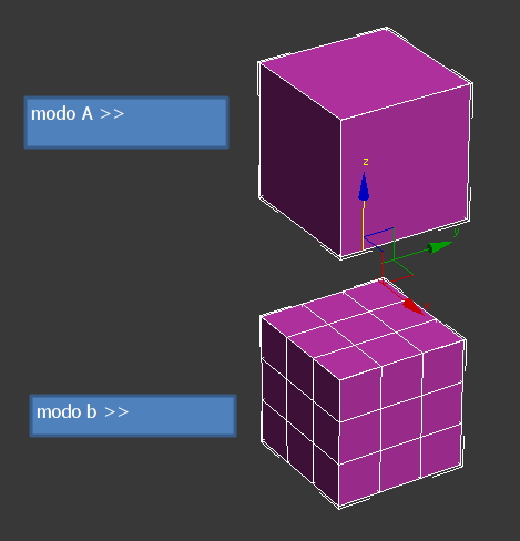 Cuando te puede valer el b: si tienes que, animar el cubo, por ejemplo, añadir un modificador bend, twist, spherify o el que sea, al tener más caras par jugar al aplicar el modificador se verá más redondeado el resultado. Luego es importante. También te puede servir en determinados motores de físicas, en PhysX no notarias ninguna diferencia entre el a o el b, pero en motores que utilizan voxels para el cálculo si que es importante.