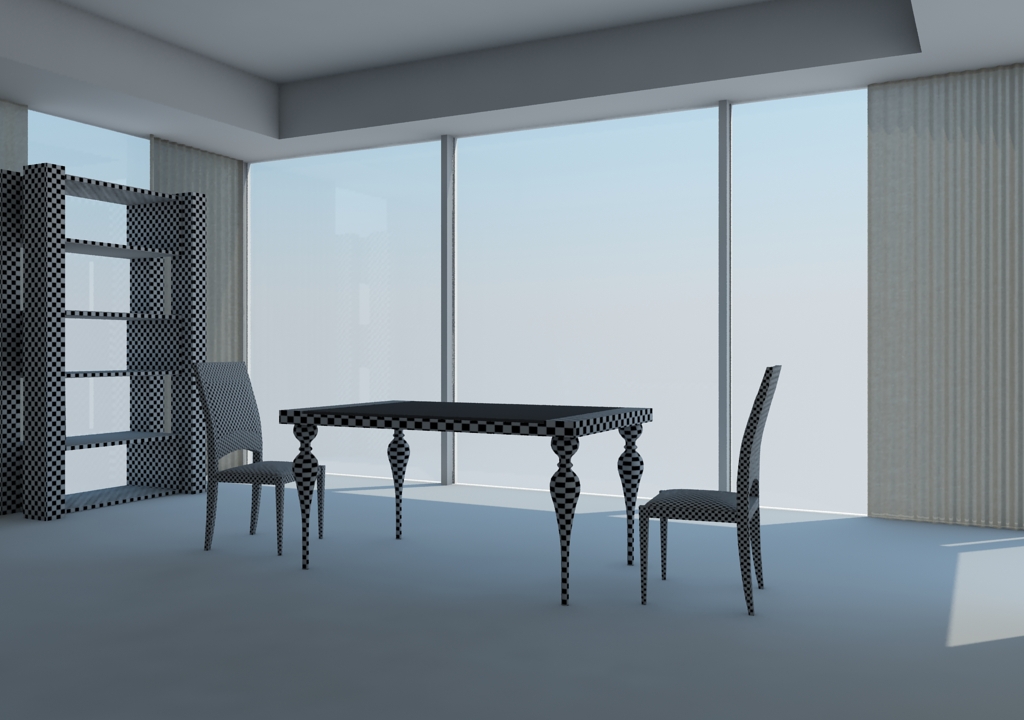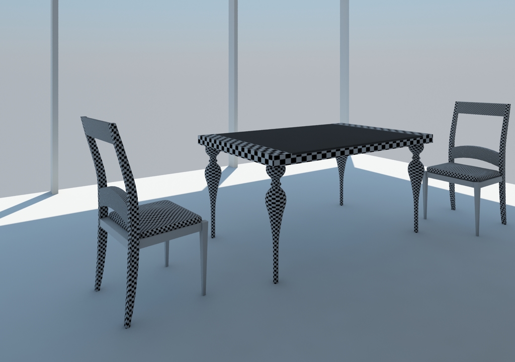El cuarto también lo modele en 3dsMax que de igual forma es la primera vez que lo modelo aquí, aún no me adapto y las medidas están proporcionadas, pero propuestas por mí, ya hice correcciones a las patas de las sillas y creo que mejoro, lo único que no me termina de convencer es el Unwrap.