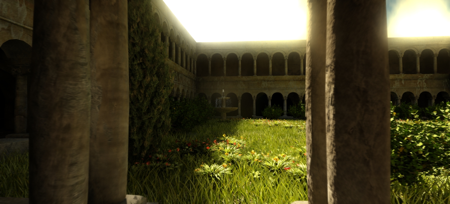 La luz de environment esta disminuida a 0.4 para que no haya demasiada luz del cielo, sino que todo sea rebote desde las paredes. Eso produce el efecto de umbra densa y húmeda, lo cual hace que la vegetación tenga su lógica frondosidad por la conservación de la humedad.