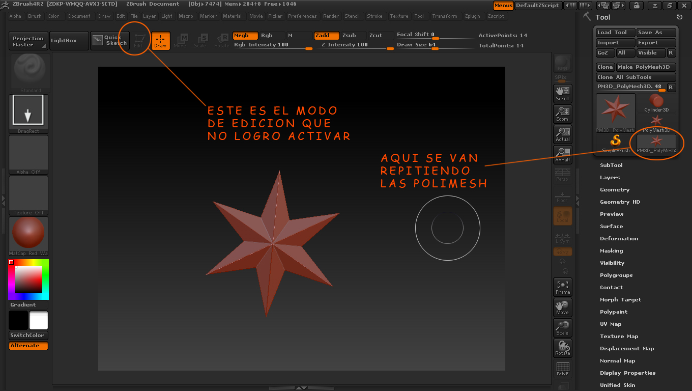 Problema de modo de edición en ZBrush