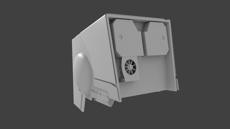 Todo lo que es simétrico lo modelo y le añado un mirror, en la parte posterior de la cabeza hay como unas cajas de batería en las que tuve que aplicar el modificador y acabarlas ya que no son simétricas.