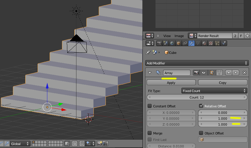 Pero si lo quieres hacer de otra forma, sería crear un solo escalón, y luego hacer un array para que se repitan.