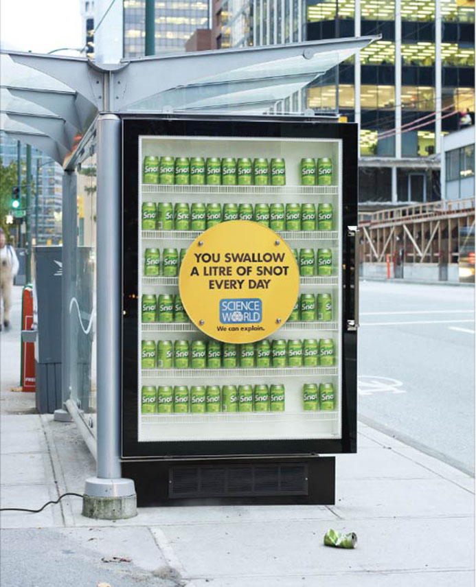 Campaña publicitaria creada por la agencia rethinque de Vancouver, el propósito es acercar el museo de la ciencia a la calle, integrándose en el entorno urbano.