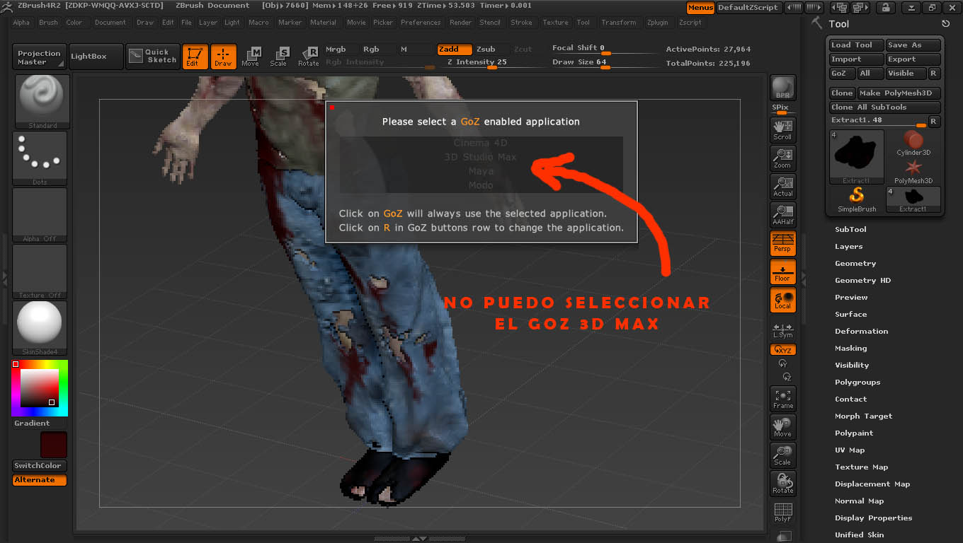 Hola tengo un problema quiero pasar un modelo que hice en ZBrush este contiene varias subtool y la Mesh está pintada con polipaint y quiero pasarlo a 3dsMax para ponerle cabellos y aparte para ser animado para un videojuego no sé cómo lo harán, pero el equipo que lo programara y animara necesita que el modelo este en 3ds Max bueno el caso es que, al abrir el archivo en (*.obj) aparte de que solo me abre una sola de las subtool abre en blanco me refiero a que no está pintada en absoluto no sé cómo resolver este problema podrían ayudarme ya también intente usar el Goz 3dsMax pero no me deja seleccionar la opción no sé por qué.