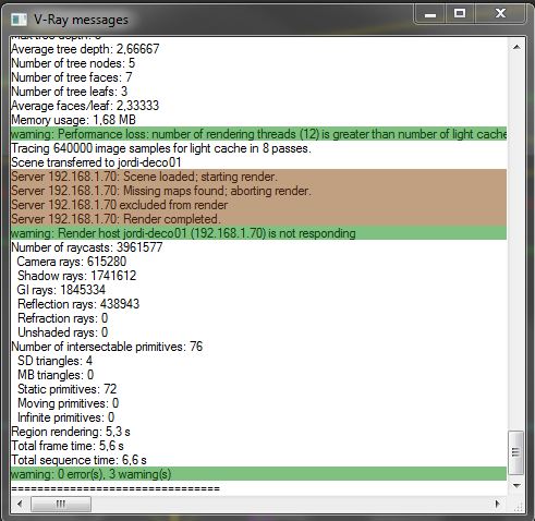 A ver, parece que nadie tiene este problema. Voy a dar más datos sobre el asunto, pruebo con otra escena la escena tiene un único material sin mapas, y en distributed render activo la casilla chek for Missing files para que el servidor no se ejecuta si encuentra algún fallo en la ruta.