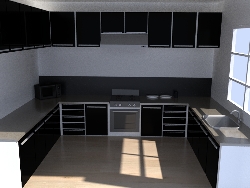 Hola me gustaría que me ayudarais un poco con el trabajo que estoy haciendo. Utilizo Blender 2.49 y Yafray. Creo, y digo creo, que el modelado no está muy mal, o al menos para mí nivel me conformo, lo que me gustaría es que me dieseis consejos sobre los materiales, sobre todo necesito mejorar el material de las puertas negras, que yo quería darle un efecto lacado, pero no me acaba de quedar bien. Además, si veis algo más que mejorar de materiales acepto vuestras críticas. El microondas no cuenta porque tengo que hacer su material aún. Tampoco me gustan los materiales de la campana extractora, la parte de chapa del horno, el fregadero y el grifo, es decir los metales, algún consejo? Puede ser problema de la iluminación? La escena tiene una lámpara Sun y una área que entran por la ventana, tal como hacen en el tutorial que estoy siguiendo. Gracias.