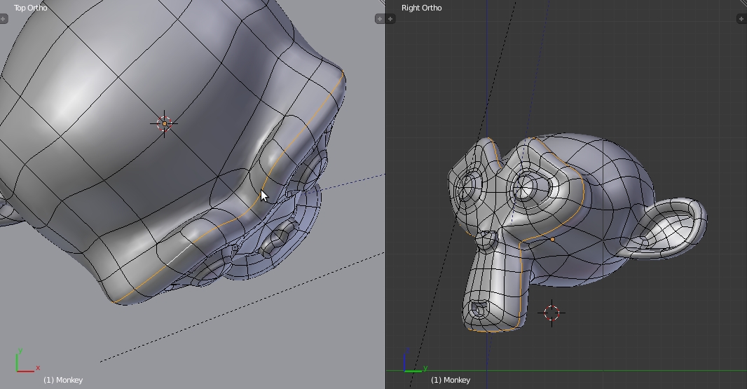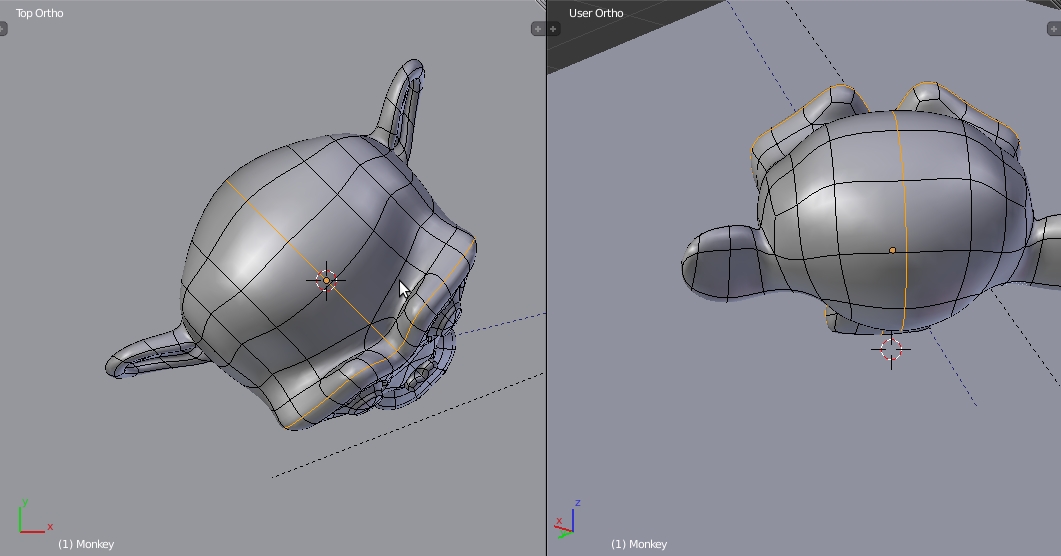 Una vez en el modelo apretamos el teclado numérico 7 para cambiar a la vista superior y luego Control + tab para seleccionar los Edges (bordes), presionando shift + Alt podemos seleccionar todo un bucle de Edges, como muestra la imagen.