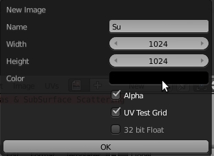 En el uv/imagen editor creamos una nueva imagen pulsando en ese botón que dice + new, le damos un nombre, y tildamos UV test grid.