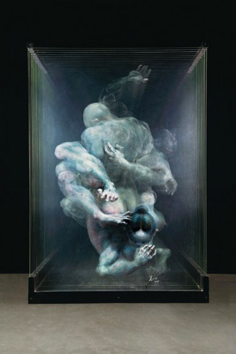 Xia Xiao wan es un artista chino que reside en Canadá y no se conocía hasta ahora. Sus chocantes obras se hicieron visibles al mundo a través del internet. Todo el proceso comienza con el dibujo en diferentes perspectivas en capas de vidrio separadas. Xia pinta cada detalle en todas las capas por el mismo. Usa sólo de lápices de colores. Dibujos en 3d de aspecto espeluznante en capas de vidrio, haciendo que se vean como un holograma.